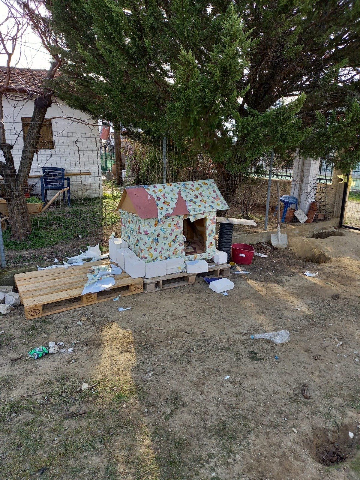 Die gespendeten Schmutzfangmatten wurden verbaut, die Hütten haben einen neuen Boden bekommen und der Regen hat nachgelassen. Danke den fleißigen Spendern für diese tollen Matten, sie helfen enorm weiter. Ihr seht, Aliki und George haben fleißige Helferlein, Billy hat alles ordnungsgemäß entsorgt!!!! 🥰😁💓🤣