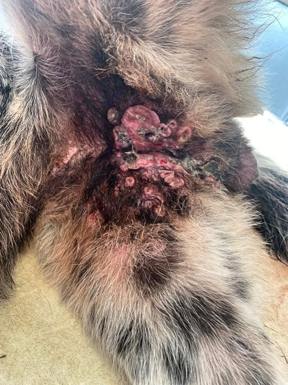 Dieser Hund ist einer unserer Patenhunde, der frei in Griechenland lebt, von uns mit Futter und medizinisch versorgt wird. Bei ihm war eine Geschlechtskrankheit festgestellt worden, die sehr schmerzhaft sein muss, weshalb die Behandlung dringend nötig ist und erfreulicherweise anschlägt, sodass es ihm besser geht. 🍀
