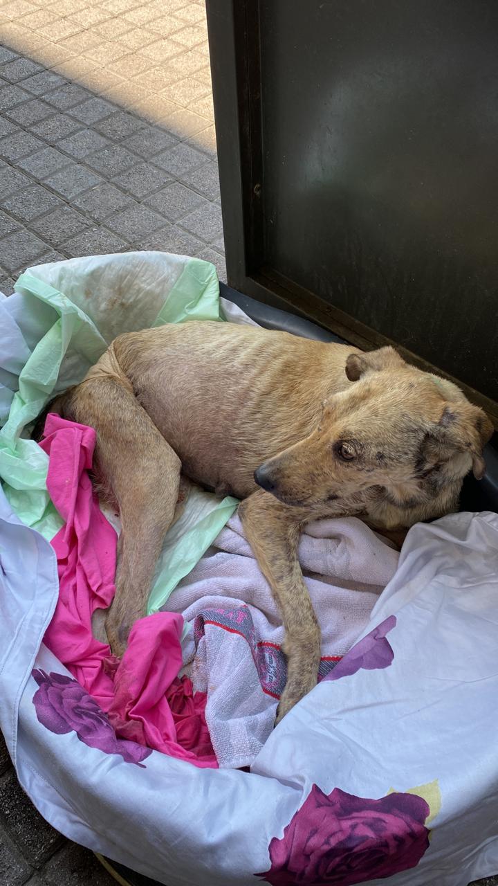 Aliki berichtet: „Gestern wurde ich von der Verwaltung angerufen, man habe einen Hund🐕🦺 in der Gegend am Strand gefunden, der seine Hinterläufe nicht mehr nutzen könnte. Wie man sieht, habe ich ihn vom Strand abholen können und notärztlich versorgen lassen. Heute sollte unser Tierarzt Thomas ihn noch mal untersuchen, aber leider kam unsere Hilfe zu spät, der kleine Kämpfer ist über die Regenbogenbrücke 🌈gegangen✨“