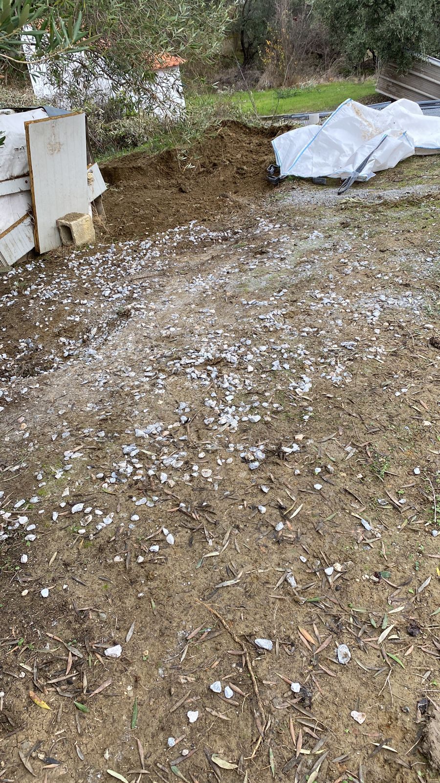 Wir machen uns Sorgen um Hope und sein Auge. Die Nässe und Kälte vor Ort haben ihm nicht gut getan. Sein Auge ist entzündet, durch die Medikamente , vom Tierarzt verschrieben, ist es inzwischen etwas besser geworden, aber Aliki wird noch zum Augenarzt fahren, um zu klären, ob eine Operation nötig ist. Der Winter kommt erst, und mit ihm leider oft Krankheiten, wir haben für die Hunde halt keine wirklich warmen Plätze. Die Bauarbeiten am Gelände starten gerade, heute ist der Kies gekommen, um die Nässe in Griff zu bekommen. Wir hoffen, dass wir unsere Hunde, vor allem unsere Notfellchen, gut durch den Winter bekommen.