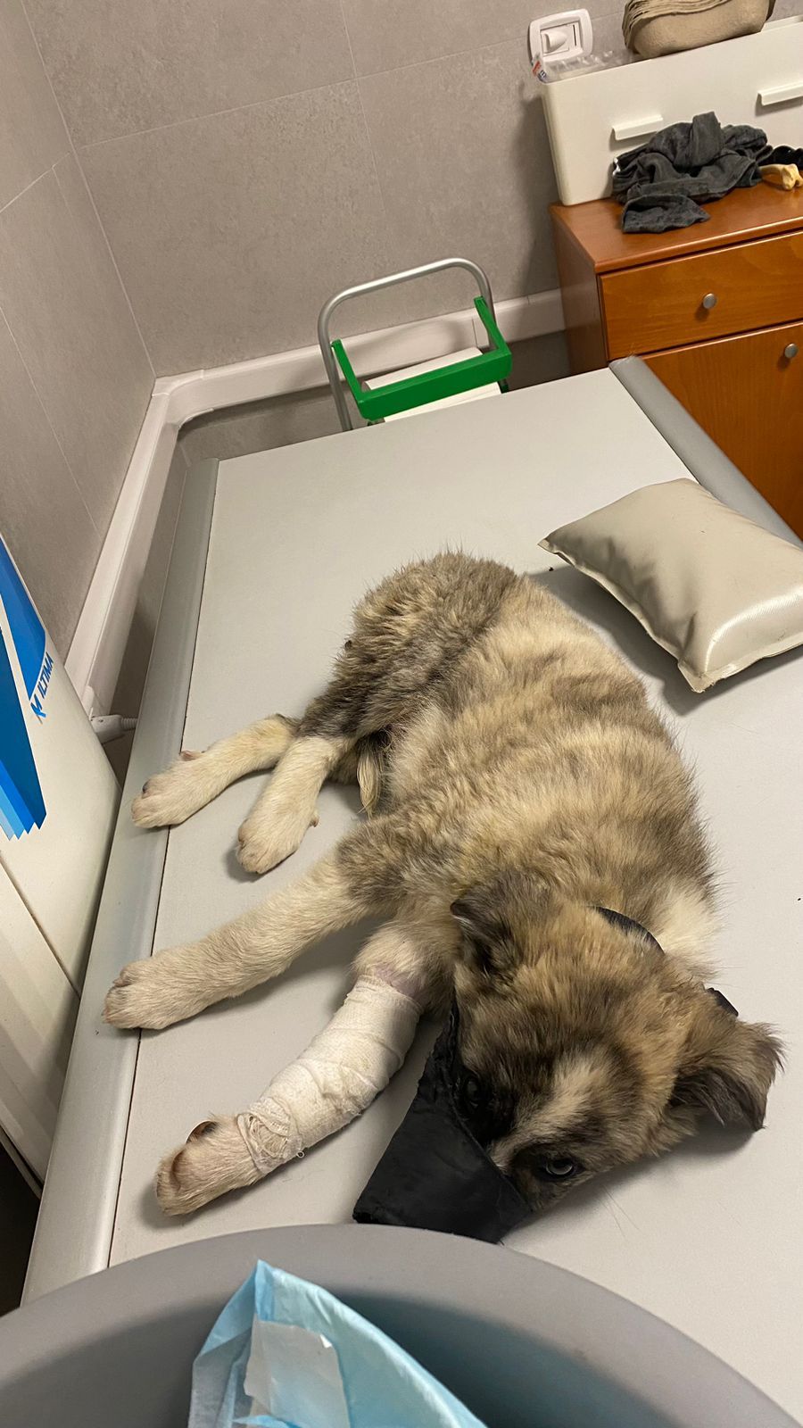 Unser kleiner Welpe hat den ersten Schritt geschafft, die Vorderbeine sind operiert worden, die Knochen verschraubt, nun soll morgen die zweite Operation, die Korrektur der Brüche an den Hinterbeinen, folgen. Der arme Kerl muss ganz schön viel durchmachen, wir unterstützen, wo wir können! Jetzt hoffen wir, dass er gutes Heilfleisch und einen Schutzengel 👼🏼 hat, damit alles gut wird. Danke für die ersten Spenden, ihr treuen Seelen! Mögen weitere Paten für Schröder dazukommen.