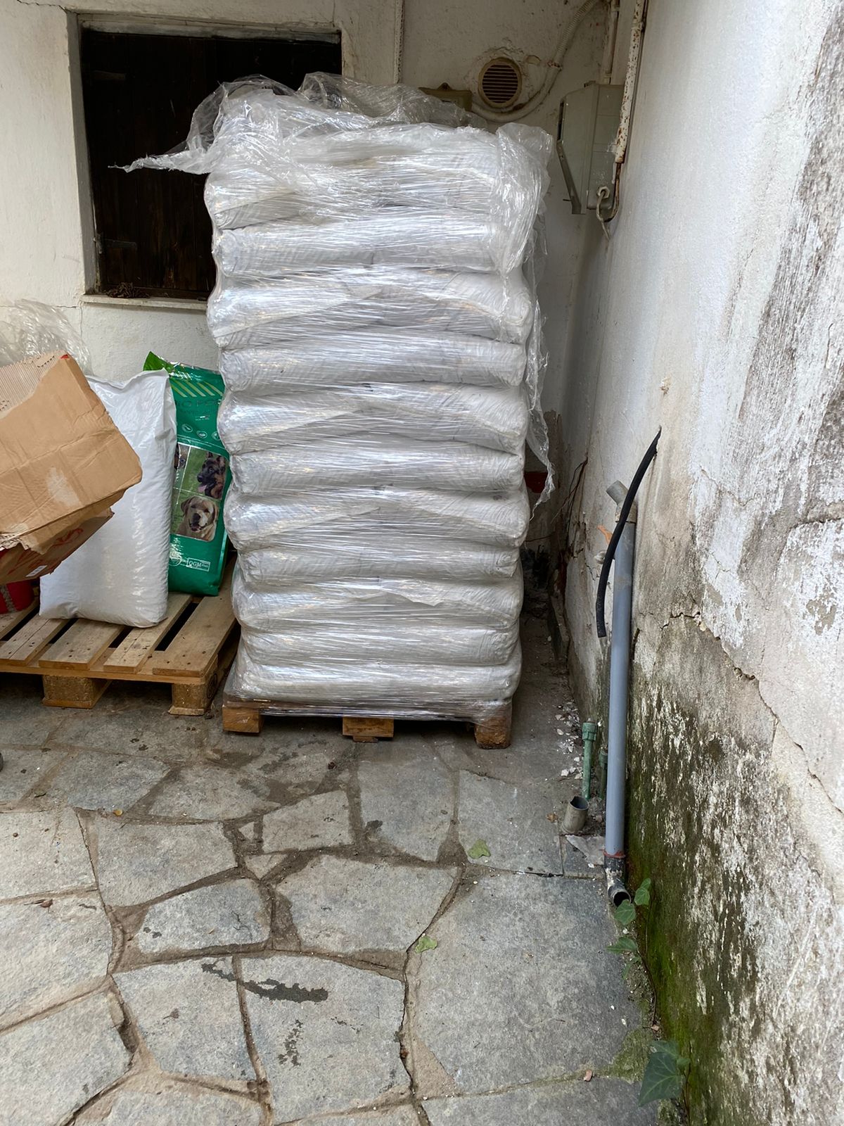 Das Hundefutter ist angekommen. Der Einkauf Anfang der Woche ist recht schnell geliefert worden. Das Hundefutter auf den Paletten muss gar nicht zwischengelagert werden, denn Sack für Sack werden von unseren Fellnasen „inhaliert“. Nur dank eurer Unterstützung ist es möglich, dass wir neben den Hunden, die in unserem Shelter leben, auch den ausgesetzten Hunden - zum Beispiel an den Thermen - den Hunger nehmen können. Jeden Monat müssen wir Futter bestellen um unsere Fellnasen satt zu bekommen.
