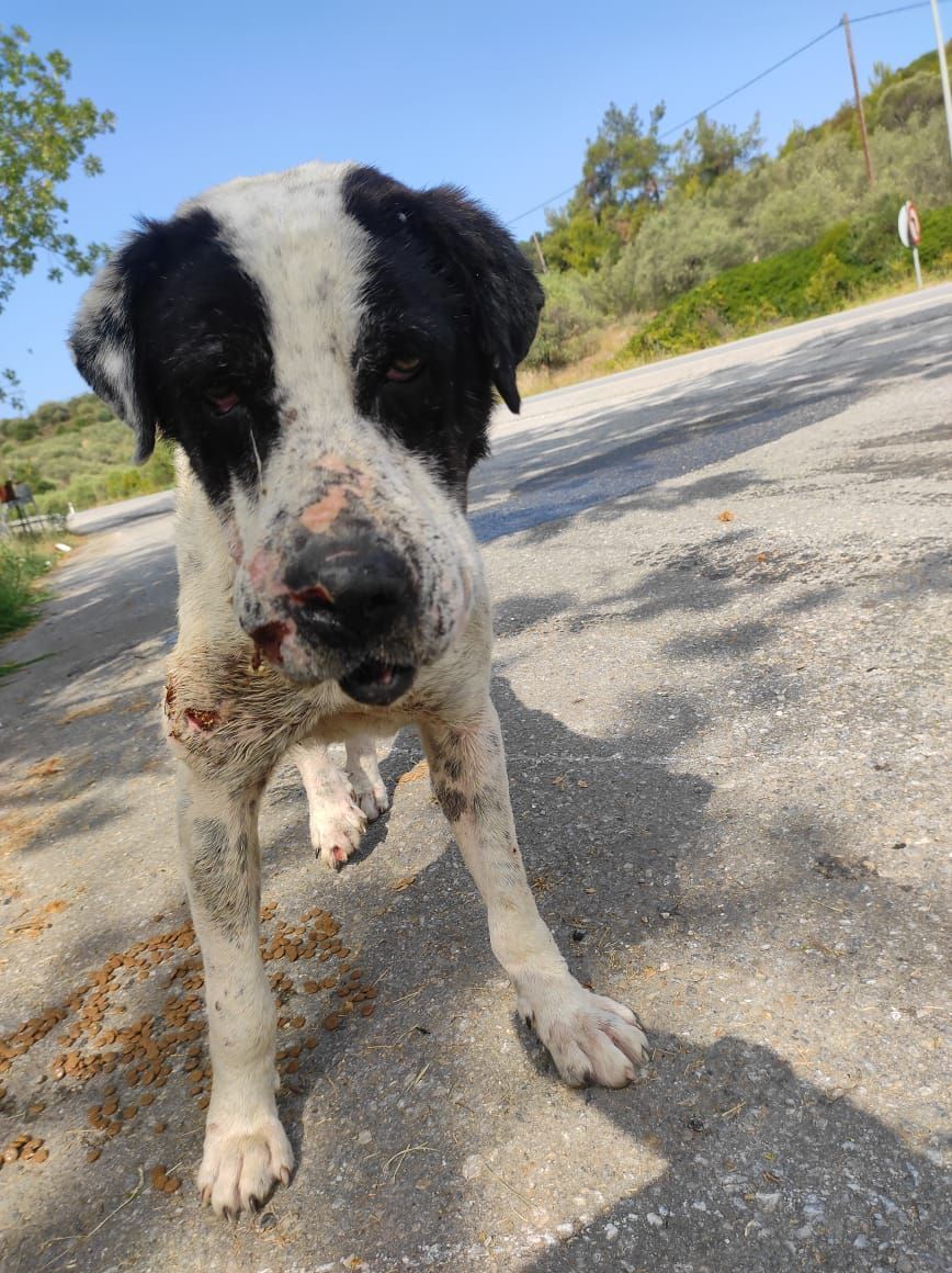 Im Frühjahr berichteten wir von den vier Hunden, die frei im Gelände zurückgelassen wurden, nachdem der Schäfer verstorben war und seine Schafe verkauft worden sind. Aliki und ihr Team hat die vier versorgt, die Hündinnen kastrieren lassen, aber in dem gewohnten Terrain leben lassen. Leider, denn heute ist eine der beiden Hündinnen zu Aliki gebracht worden, verletzt und extrem dehydriert. Aliki hat sie umgehend zum Tierarzt gebracht, es ist eine schlimme Bisswunde an der Kehle, ein Wildschwein hat sie attackiert, einen Rüden sogar totgebissen. Jetzt hoffen wir auf einen Schutzengel für diese Hündin, möge alles gut zusammengenäht sein und verheilen. Arme Maus! Bedauerlicherweise hat sie auch noch keinen Namen, wer möchte hier