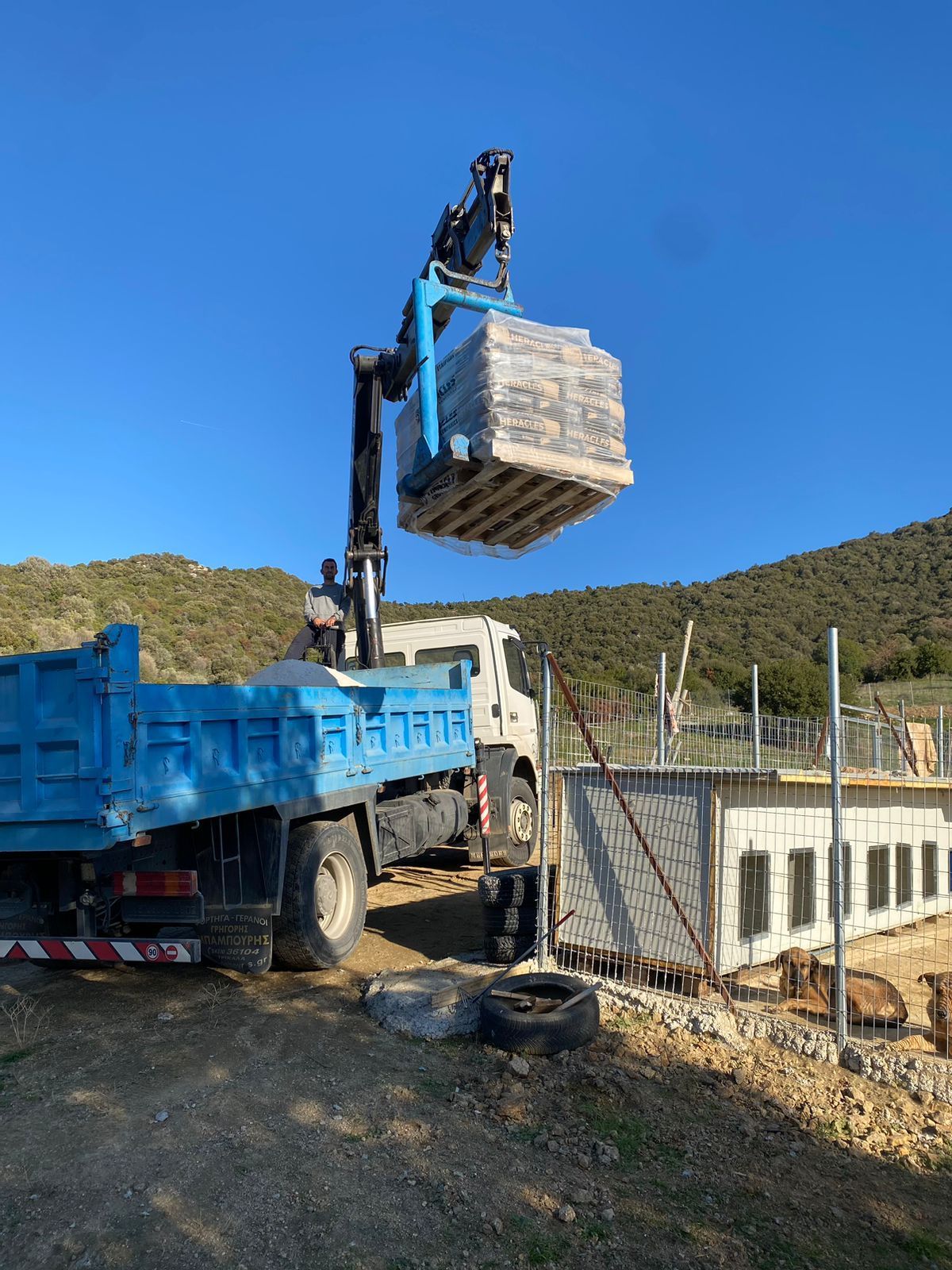 Herzlichen Dank sagen wir allen Tierfreunden, die uns mit ihren Spenden unterstützt haben, so dass nun neuer Beton geliefert werden konnte, um für die nächsten Hundehüttenkomplexe den Untergrund vorzubereiten. So haben wir für die Hütten eine trockene, etwas erhöhte Ebene, zugleich wird das jeweilige Gehege an den Hütten „regendicht“ vorbereitet, damit die Hunde wirklich einen trockenen Schutz haben. Dies alles ist viel Arbeit in Griechenland, dank der Spenderinnen und Spender in Deutschland aber möglich geworden. Euch allen sagen wir herzlichen Dank! 🙏🏽💙