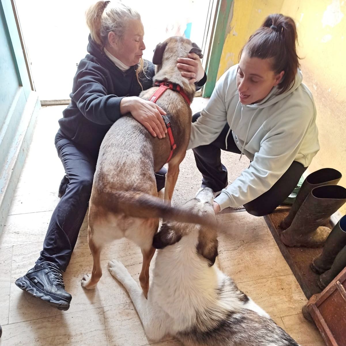 Sofia und Eva, zwei unserer griechischen Tierschützerinnen sind nach Deutschland eingeladen worden, um einen Herzenswunsch erfüllt zu bekommen. Im letzten Jahr ist erst Elli nach Deutschland vermittelt worden, und kurz darauf unser Sorgenkind Riky. Eva und Sofia haben, die beiden ziehen lassen müssen, weil es ihnen hier in Deutschland besser gehen wird, aber Herzschmerz war auf jeden Fall dabei. Denn Elli war die beste Freundin von Riky, unserem Sorgenkind, zog zuerst aus, dann Riky, aber dank der tollen Adoptiveltern bleiben beide Hunde in Kontakt. Riky ist als Welpe zum Tierarzt gebracht worden, mit der Bitte ihn einzuschläfern, weil er als griechischer Schäferhund unbrauchbar wäre, ein Gendefekt im Hirn verhindert, dass er richtig laufen kann. Sofia hat sich geweigert und diesen Hund zu sich genommen, ihn mit Eva aufgepäppelt und Nullkomma-Nichts hat sich Riky in ihr Herz gelacht. Er ist so ein fröhlicher Hund, die Behinderung ist für ihn in Deutschland kein Problem, er lebt auf einem Hof im Glück. Und dieses ist mit dem heutigen Besuch perfekt, mit Tränen in den Augen aller Menschen und dem Wedeln aus den Herzen der Hunde war die Wiedersehensfreude groß. Auch wir sagen, danke für das große Glück, was so diesen Freunden beschert wurde, es zeigt einfach, dass sich unsere Arbeit lohnt. ♥️ Danke für diesen Traum 🙏🏽🙏🏽🙏🏽🙏🏽‼️